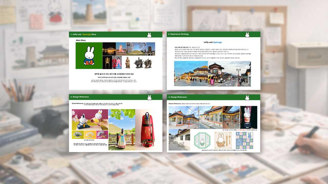 이러한 보편적인 캐릭터가 한국의 대표적인 역사 도시인 ‘경주’와 만났을 때 만들어지는 새로운 경험에 주목했습니다. 신라 문화와 전통 공간, 지역적 상징을 미피의 절제된 세계관 안에 자연스럽게 녹여내어 오직 경주에서만 경험할 수 있는 로컬 익스클루시브 미피 스토리를 찾기 위한 작업을 진행하였습니다.